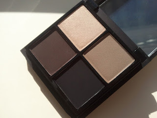 Produkt - Każda z palet, tak jak wspomniałam na początku zawiera cztery cienie oraz kremowy róż/bronzer. W każdej najciemniejszym cieniem jest Carbon /intense black - M/ , czego akurat nie pochwalam, bo to mat raczej trudny i mało wdzięczny w obsłudze, pomijając już nawet fakt, że chyba każda amatorka marki posiada go w swoim zbiorze. Pozostałe cienie to